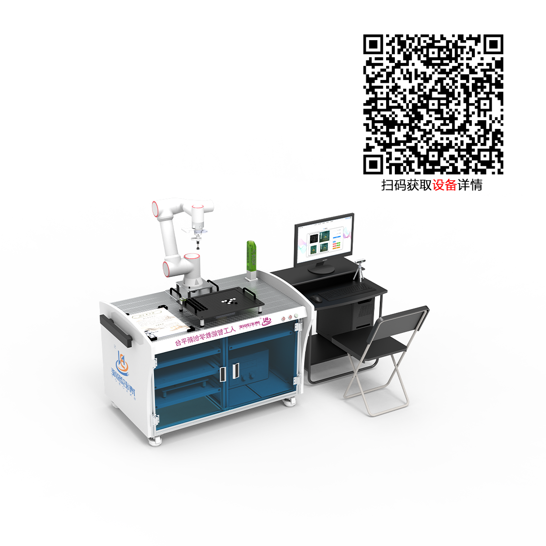 产品概述:以人机对弈(五子棋、象棋、围棋)、物料分拣、手势控制、语音控制为典型应用场景,由协作机器人、深度相机、AI智能体、AI机器人控制模块、PLC、扩拾音、人机对弈和物料分拣模块等组成。可满足Python编程、计算机语音与视觉应用、数据分析、基于DeepSeek的智能编程、工业控制、机器人编程等技术的教学。适合《人工智能训练师》初、中、高级的职业技能等级认定。