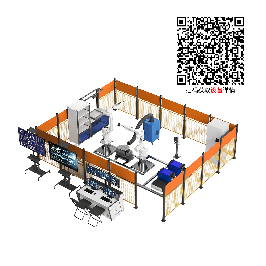 产品概述:工业机器人智能焊接工作站由焊接工业机器人、焊接设备、搬运工业机器人、双轴变位机、焊道跟踪相机、熔池相机、焊缝检测相机、焊件识别相机、焊件智能识别平台和立体仓库等组成,涵盖机器人应用、AI识别、智能焊接、智能检测、数字孪生、MES等技术,工作站既覆盖智能焊接系统应用、焊接机器人编程和焊接工艺应用等基础教学场景,又囊括典型机器人应用、AI识别应用、数字孪生技术应用等先进技术,适用于教学实训、技能竞赛、技术展示等多重场景,以及工业实际智能焊接应用,为智能焊接技术的整合应用提供标准化样板与灵活扩展空间。