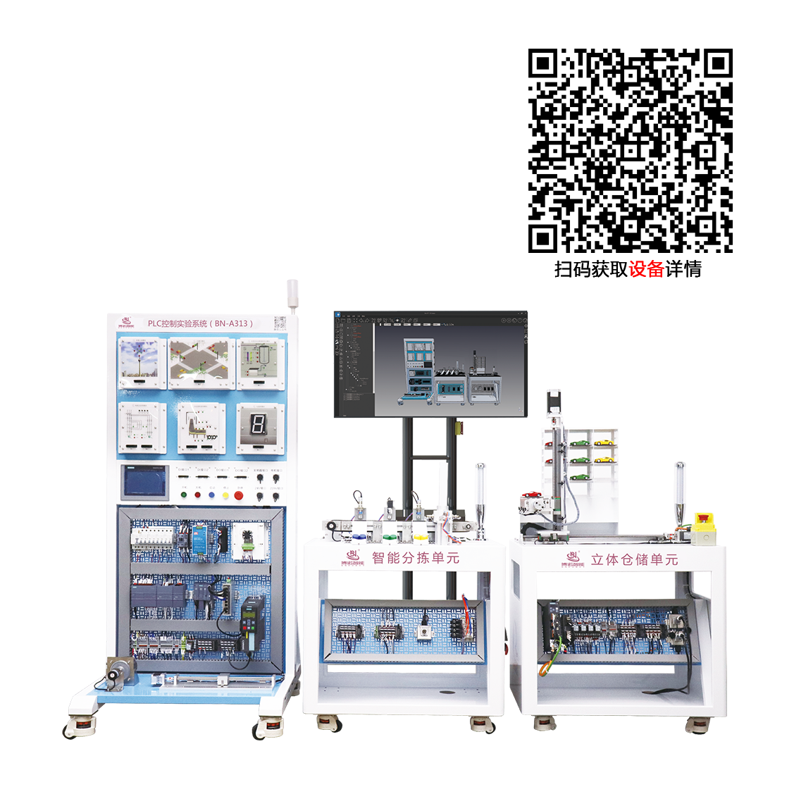 产品概述:采用开放式、模块化设计,既可通信控制分拣及仓库平台,又配备了步进驱动标尺滑台、电机转速测试等丰富的实训模块,涵盖了变频调速、步进控制、伺服驱动、气动控制、检测与传感、上位机编程、工业网络等技术,利用数字孪生技术构建 PLC 控制虚拟产线等多种应用场景,被控对象可自导入,实现虚实同步、协同控制。满足PLC控制系统的应用能力与训练。其中PLC、伺服驱动器、变频器等可选配西门子、汇川等主流品牌。