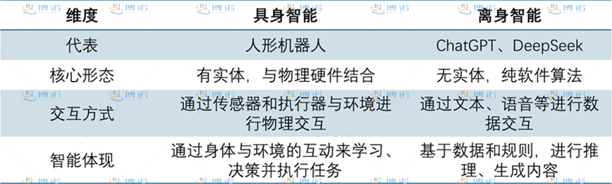 人工智能与具身智能是包含与进阶的关系,具身智能作为人工智能的重要分支与进阶形式,既继承了传统人工智能的数据处理、模型训练及逻辑推理能力,擅长对结构化的数据、图像、语音等信息进行分析处理,又突破了传统人工智能依赖符号处理、局限于虚拟环境完成静态结构化任务的边界,通过增加物理载体并构建“感知—推理—决策—执行”的闭环系统,实现了与物理世界的实时动态交互,完成了从数据处理到物理行为的跃迁,其智能的产生高度依赖身体与环境的互动,更适配动态多变的真实场景,也让人工智能进一步贴近人类智能的感知与应变模式。