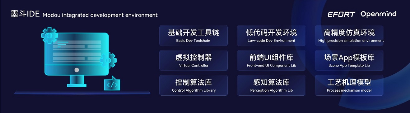 基于 windows 系统的集成软件,面向用户提供便捷接口,实现机器人应用解决方案的软硬件一体化服务,有效降低机器人开发门槛,集成仿真、调试、编码功能,支持低代码开发模式。