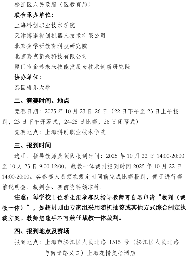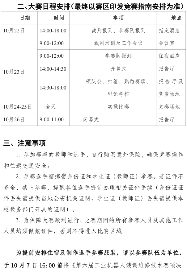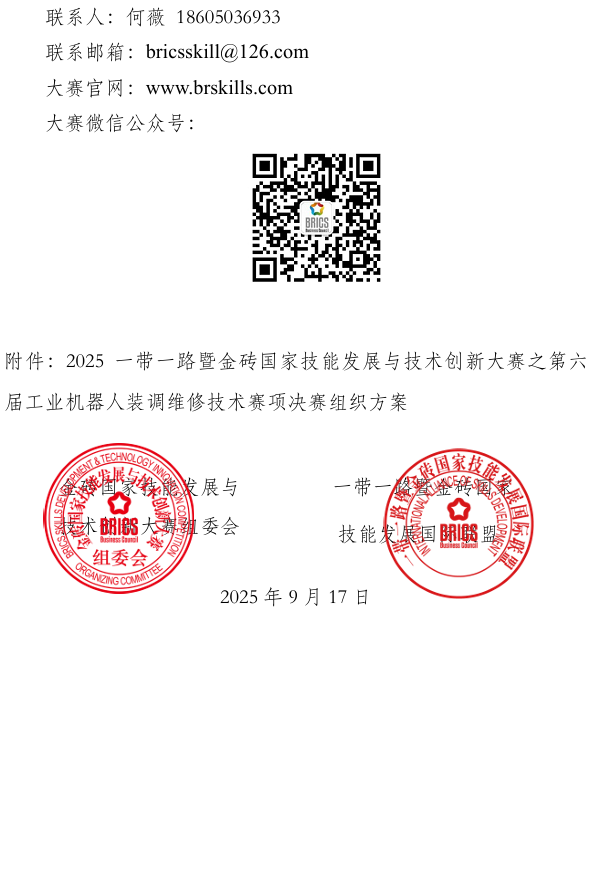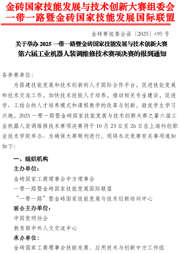 关于举办2025一带一路暨金砖大赛之第六届工业机器人装调维修技术赛项决赛的报到通知