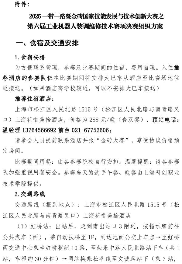关于举办2025一带一路暨金砖大赛之第六届工业机器人装调维修技术赛项决赛的报到通知(1).pdf