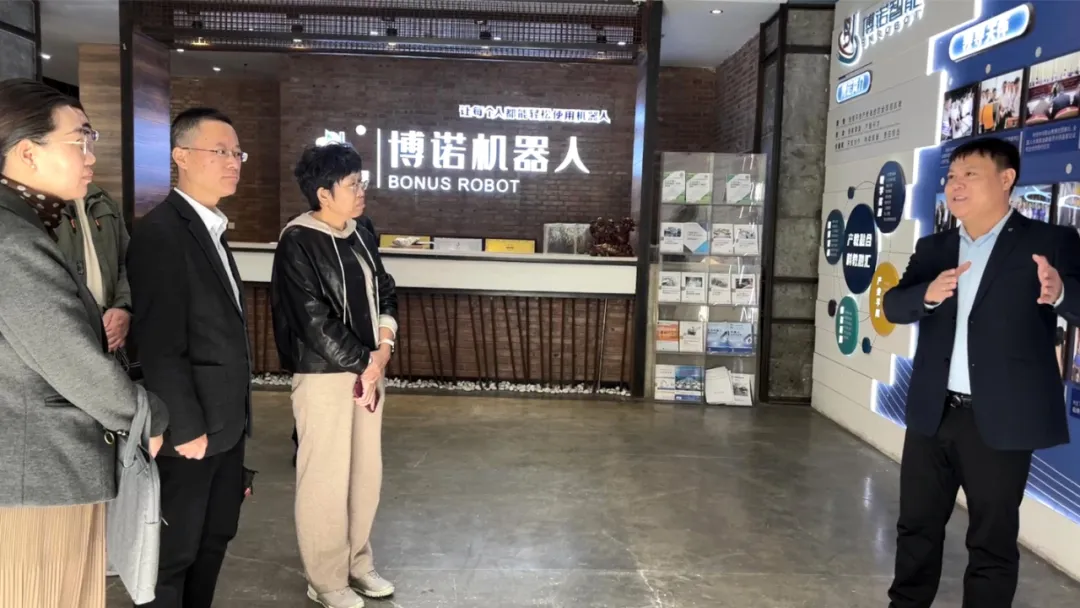 在博诺总经理周旺发的全程陪同和讲解下,来访领导一行参观了一楼路演大厅,初步了解了企业发展历程和自研成果;随后参观了二楼生产车间,对博诺的生产工艺流程、管理和运营模式等有了全面认知;然后参观了三楼培训学校,通过观察课堂学习、实操训练等方面直观了解博诺在人才培养、技能传承和行业竞争力构建上的系统性布局。