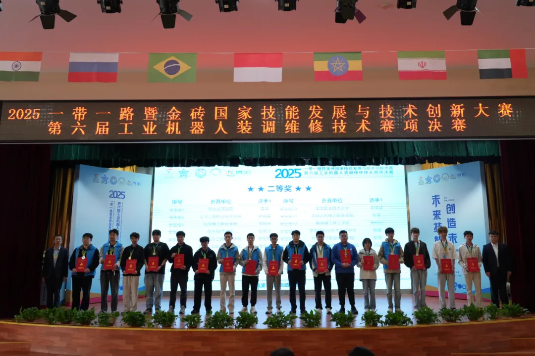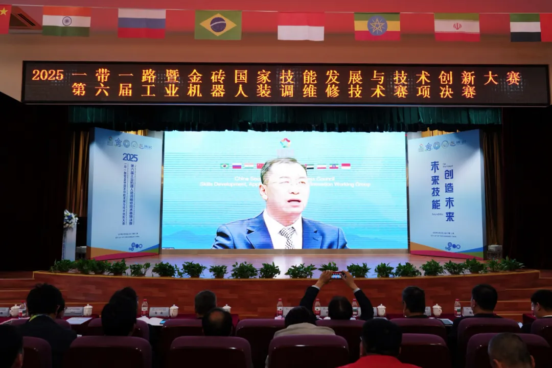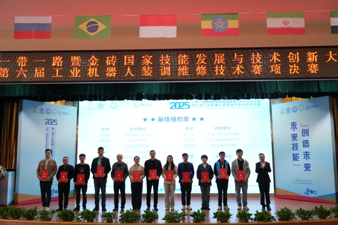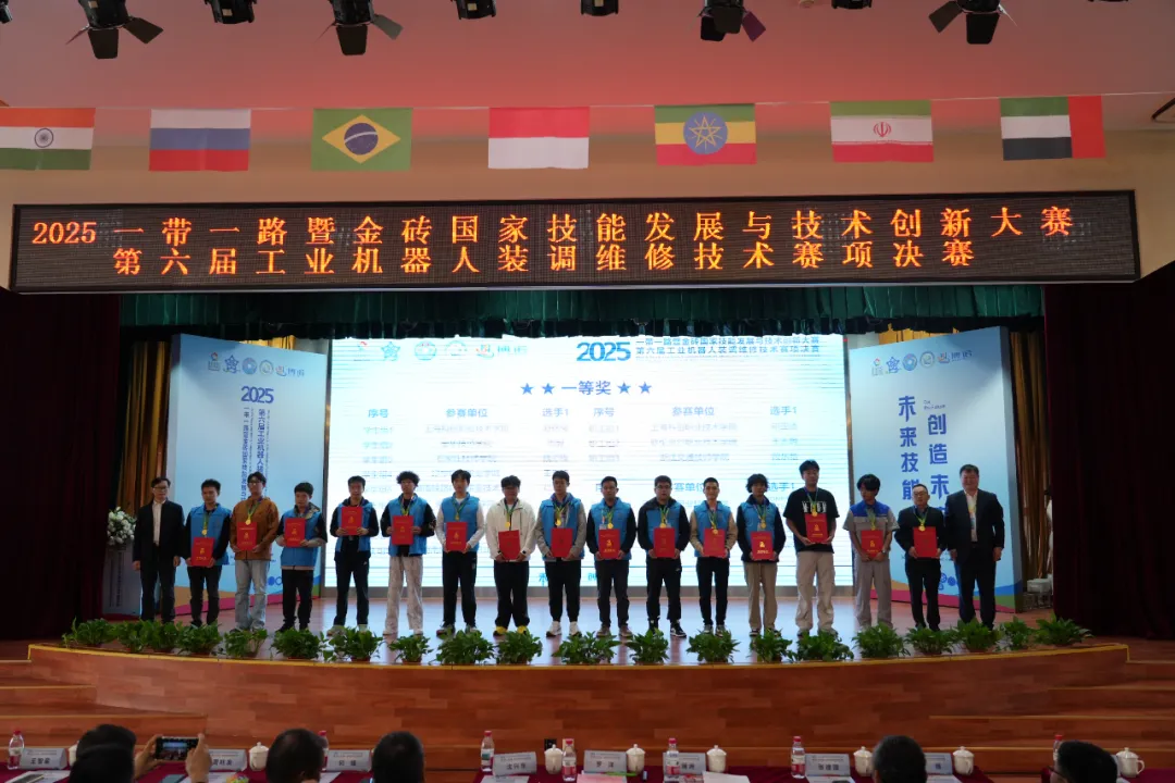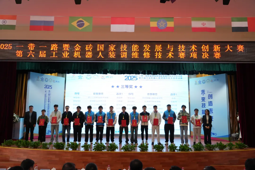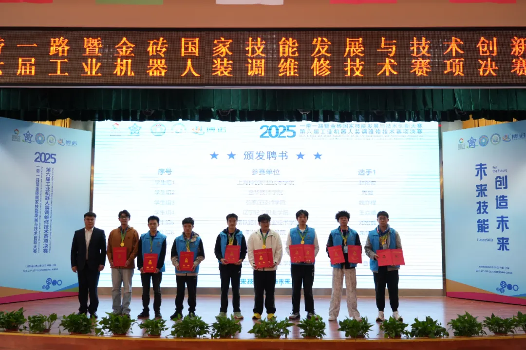 2025年10月23日-10月26日,由金砖国家工商理事会中方理事会、一带一路暨金砖国家技能发展国际联盟、中国科协“一带一路”暨金砖国家技能发展与技术创新培训中心主办,中国发明协会、教育部中外人文交流中心联合主办的2025年一带一路暨金砖国家技能发展与技术创新大赛之第六届工业机器人装调维修技术赛项决赛在上海举行。