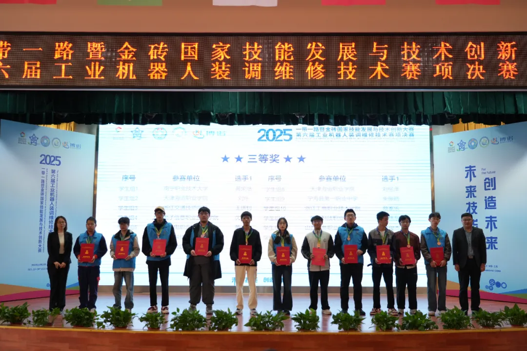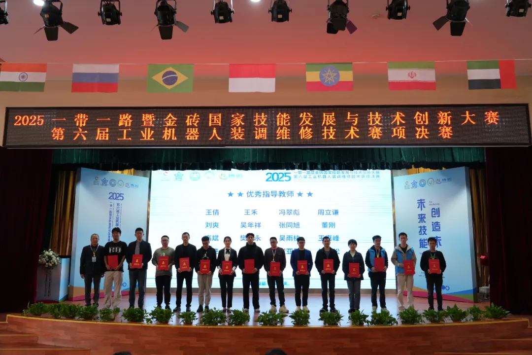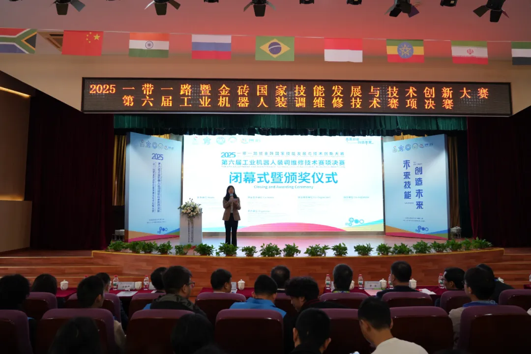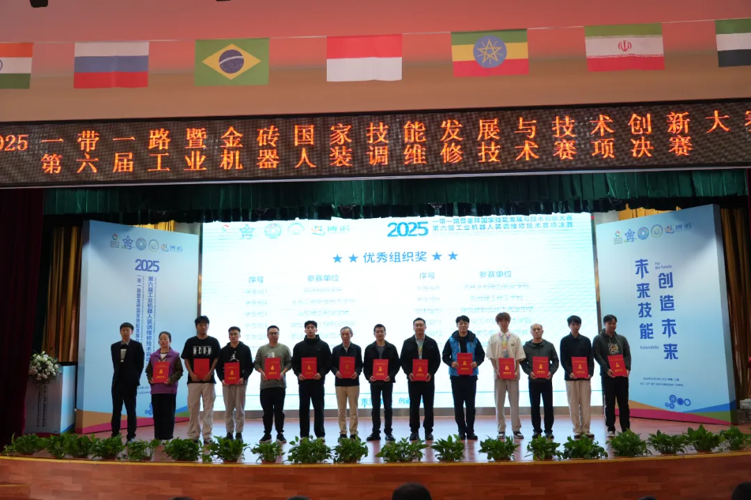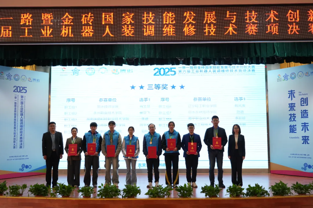 2025年10月23日-10月26日,由金砖国家工商理事会中方理事会、一带一路暨金砖国家技能发展国际联盟、中国科协“一带一路”暨金砖国家技能发展与技术创新培训中心主办,中国发明协会、教育部中外人文交流中心联合主办的2025年一带一路暨金砖国家技能发展与技术创新大赛之第六届工业机器人装调维修技术赛项决赛在上海举行。