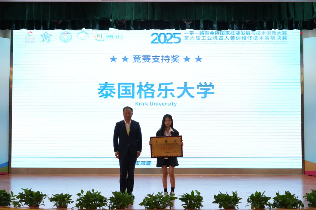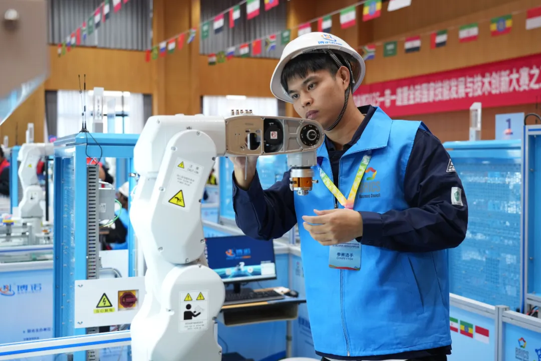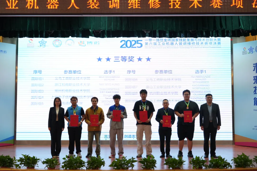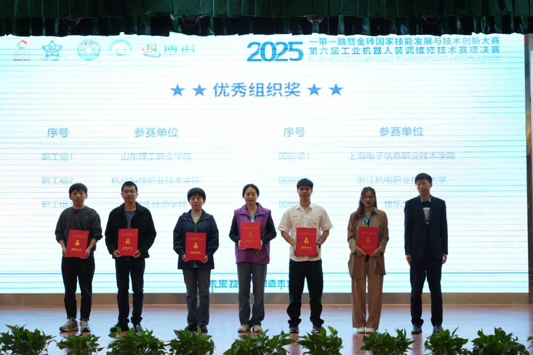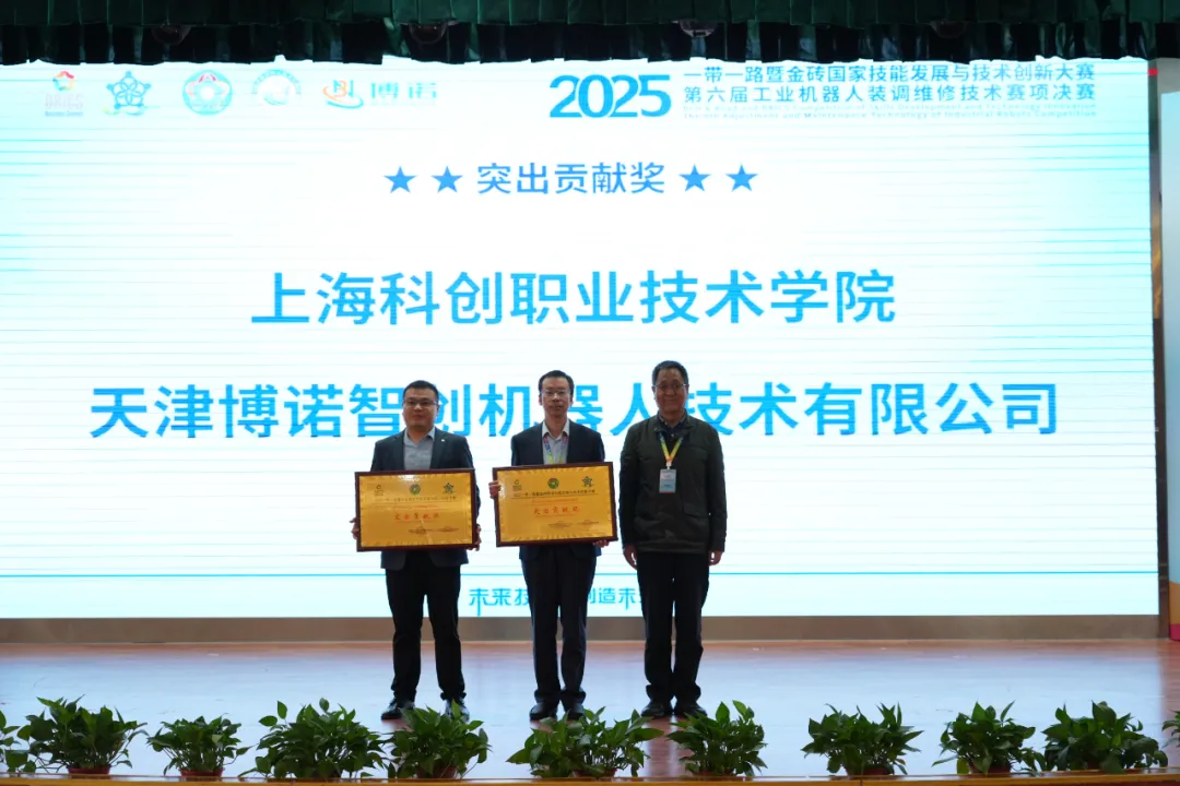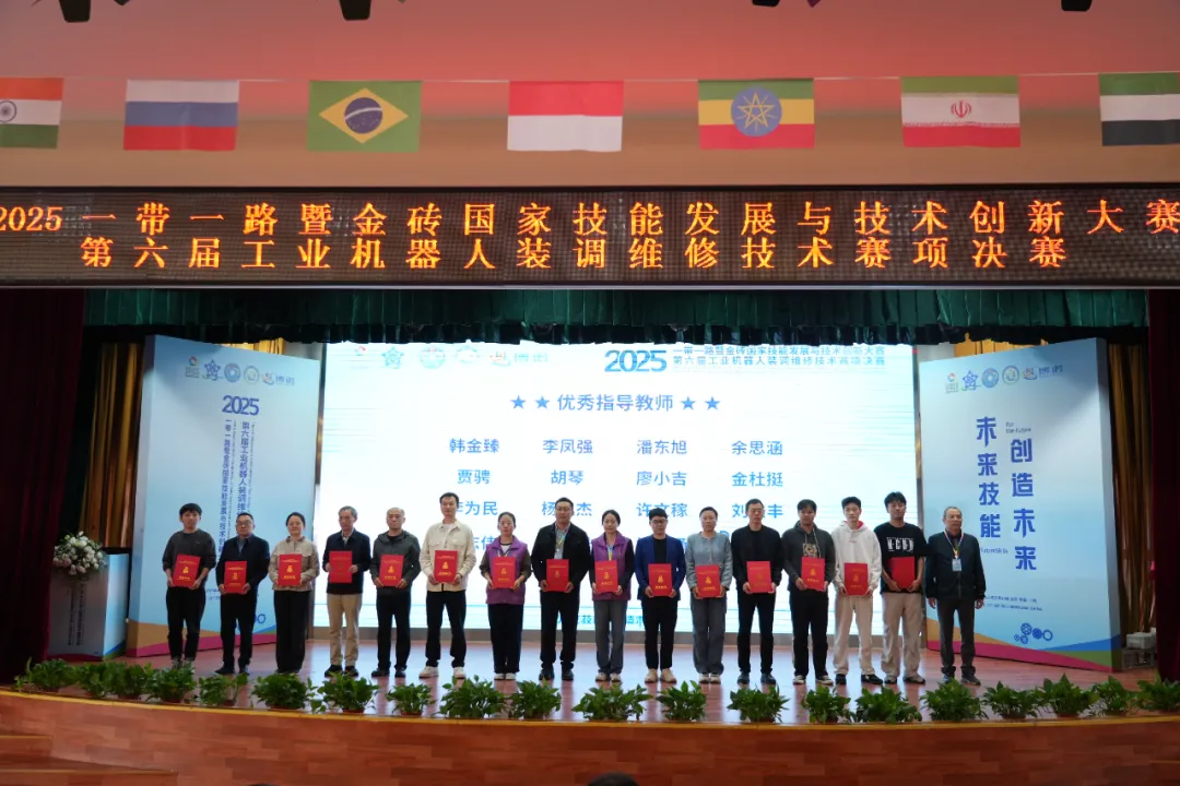 2025年10月23日-10月26日,由金砖国家工商理事会中方理事会、一带一路暨金砖国家技能发展国际联盟、中国科协“一带一路”暨金砖国家技能发展与技术创新培训中心主办,中国发明协会、教育部中外人文交流中心联合主办的2025年一带一路暨金砖国家技能发展与技术创新大赛之第六届工业机器人装调维修技术赛项决赛在上海举行。