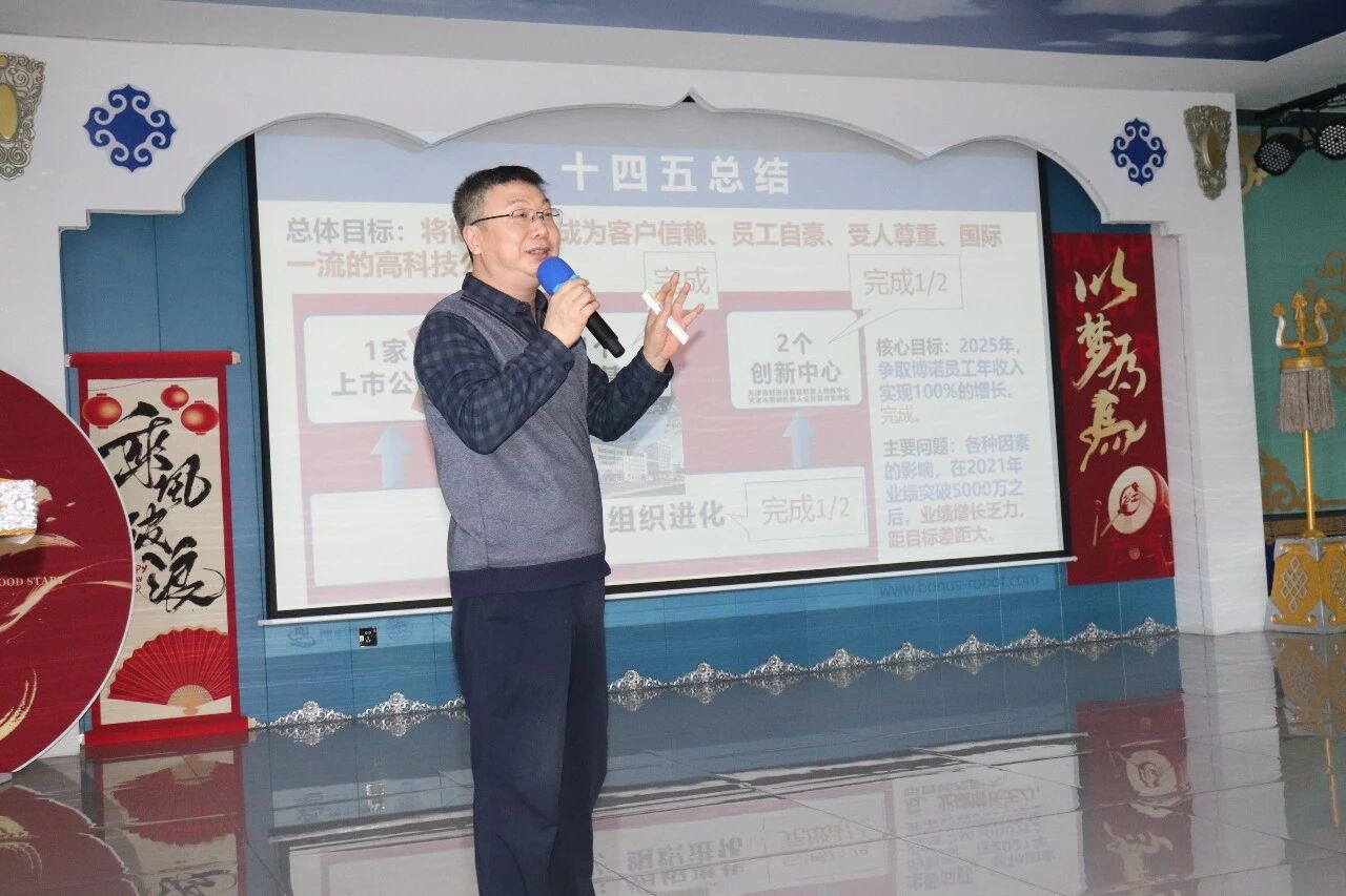 博诺智能创始人邓三鹏院士发表新年致辞,在热烈的掌声中,他深入剖析了行业发展趋势,回顾了过去五年的奋斗与成就,感谢每一位员工的辛勤付出,并公布了新一年的重点工作安排,他的话语坚定而充满力量,新的一年,博诺智能将继续坚持“全心全意为客户服务 同心共创奋斗者幸福”的初心使命,共同书写更加辉煌的篇章。