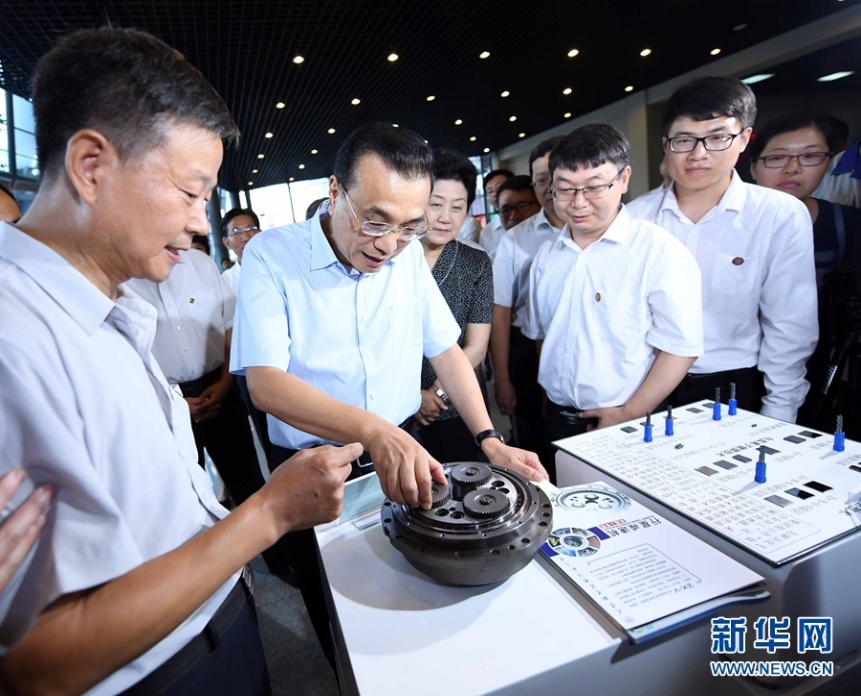 图1 李克强总理听取李充宁教授、邓三鹏教授RV减速器研究成果汇报