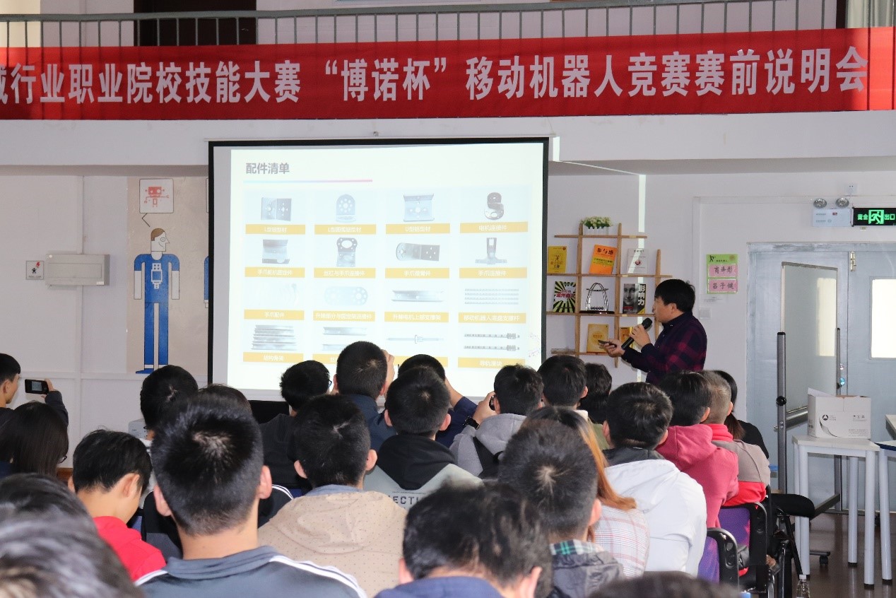 博诺10月22日下午,2017年全国机械行业职业院校技能大赛——“博诺杯”移动机器人竞赛暨天津市职业技能竞赛赛前说明会在我校举行,来自全国院校的70余名指导教师参加。