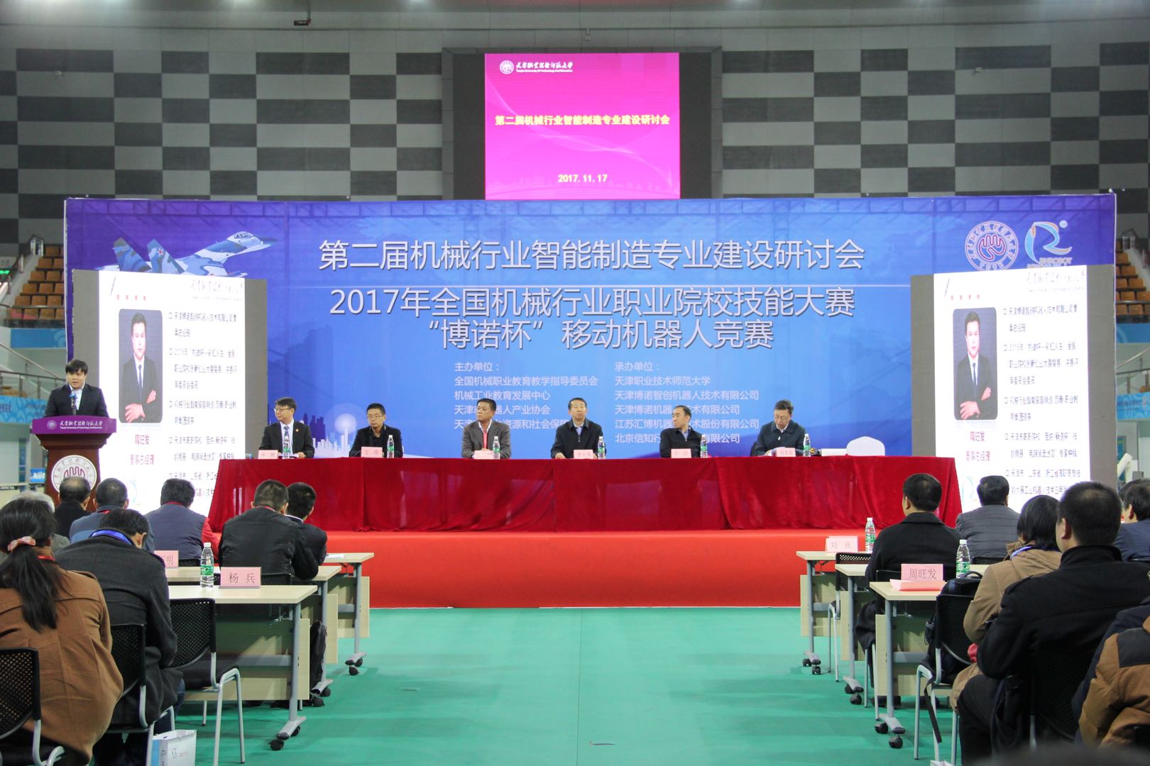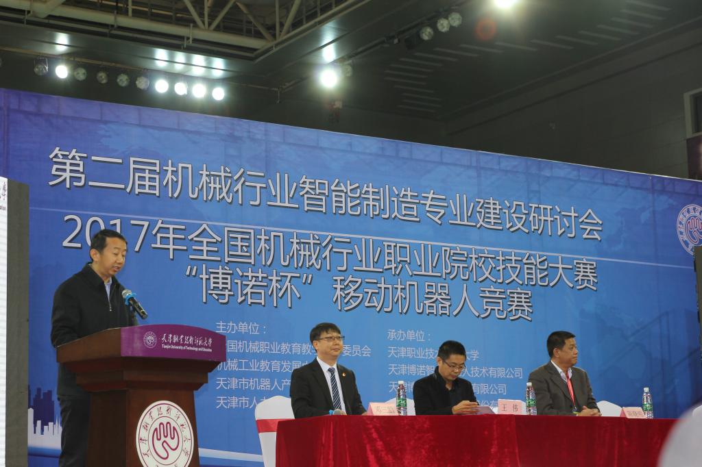 博诺11月17日,由全国机械职业教育教学指导委员会、机械工业教育发展中心和天津市机器人产业协会主办,天津职业技术师范大学、天津博诺智创机器人技术有限公司和天津博诺机器人技术有限公司承办的第二届全国机械行业智能制造专业建设研讨会在天津职业技术师范大学(以下简称“天职师大”)隆重举行。校党委书记李大勇出席并致辞,校党委副书记、校长刘欣出席并作主旨报告。研讨会由机器人及智能装备研究所所长邓三鹏教授主持。