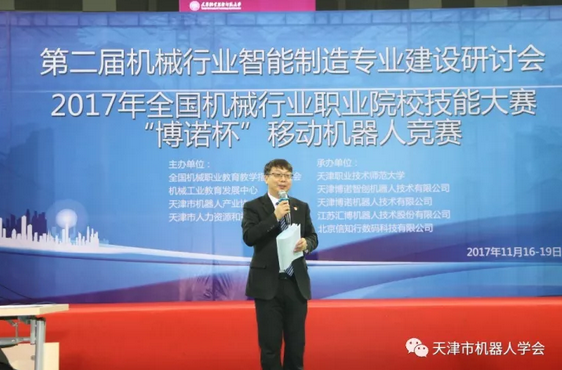博诺11月17日上午,第二届全国机械行业智能制造类专业建设研讨会在天津职业技术师范大学隆重举行。会议由全国机械职业教育教学指导委员会、机械工业教育发展中心和天津市机器人产业协会主办,天津职业技术师范大学、天津博诺智创机器人技术有限公司和天津博诺机器人技术有限公司承办。