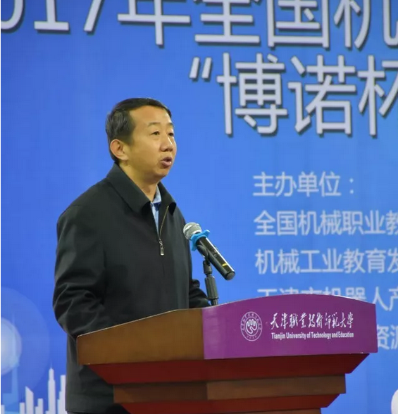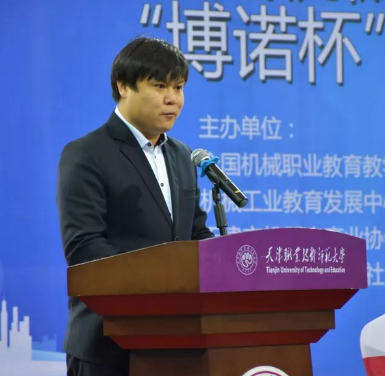 博诺出席开幕式的领导有全国机械职业教育教学指导委员会、机械工业教育发展中心陈晓明主任、天津职业技术师范大学李大勇书记、刘欣校长、天津市人社局职业能力建设处于洋副处长、南开大学机器人与信息自动化研究所所长、天津市机器人学会副会长刘景泰教授、天津市机器人产业协会刘晓鸣会长、梅江平秘书长、天津市滨海新区招商局政策法规局张永副局长、机器人技术与应用杂志社王伟副主编、埃夫特智能装备股份有限公司曾辉副总经理,以及来自全国21省市的400多名院校领导、专家学者和企业代表。