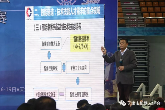 博诺天津职业技术师范大学机器人及智能装备研究所所长、天津市机器人学会秘书长邓三鹏教授作了题为“智能制造应用型人才培养的实践与思考”的报告。报告介绍了天津职业技术师范大学智能机器人技术及应用人才培养的情况,对中国制造2025行动纲领进行了深度剖析,阐述了发达国家应对制造模式变革的方案,分析了我国制造业的战略步伐及所遇到的困境;回顾了中国机器人产业的发展历程,分析了机器人产业人才需求现状;展示了实践教学体系建设一系列案例,在教学研究、科研成果与转化等方面提出了自己的见解与经验。