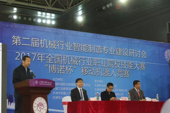 博诺11月17日至19日,第二届全国机械行业智能制造专业建设研讨会及2017年全国机械行业职业院校技能大赛“博诺杯”移动机器人竞赛暨天津市职业技能竞赛在我校隆重举行。本届研讨会是由全国机械职业教育教学指导委员会、机械工业教育发展中心和天津市机器人产业协会主办,天津职业技术师范大学、天津博诺智创机器人技术有限公司和天津博诺机器人技术有限公司承办。参会人员主要来自开设机电类相关专业的应用技术大学、职业院校和技工学校的专业带头人、骨干教师,以及相关企业的专业技术人员。