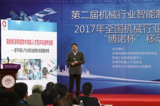 全国机械职业教育教学指导委员会主任陈晓明作题为“机器人产业与职业教育协调发展辨思”的报告