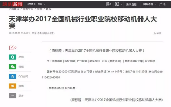 博诺11月17至19日,由全国机械职业教育教学指导委员会、机械工业教育发展中心等单位主办,天津职业技术师范大学、天津博诺智创机器人技术有限公司、天津博诺机器人技术有限公司等单位承办的2017年全国机械行业职业院校技能大赛-“博诺杯”移动机器人大赛在天津职业技术师范大学体育馆举行。大赛分为教师组,中职组和高校组三个组别,吸引了来自全国13个省市共计86支队伍。经过三天的激烈角逐,本次比赛共产生一等奖9项,二等奖21项。