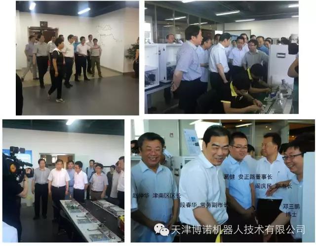 博诺天津市市委常委、常务副市长段春华,天津市副市长、天津自贸试验区管委会第一副主任阎庆民 ,区长赵仲华、副书记刘惠莅临创客工场,指导天津博诺机器人技术有限公司的工作,观看了教学型工业机器人,履带式智能移动机器人,AGV,隧道巡检机器人,自动化流水线培训系统,详细介绍了PM2.5采样器的研发、生产和市场情况,段副市长听了非常高兴,对我们取得成果表示了热烈的祝贺!