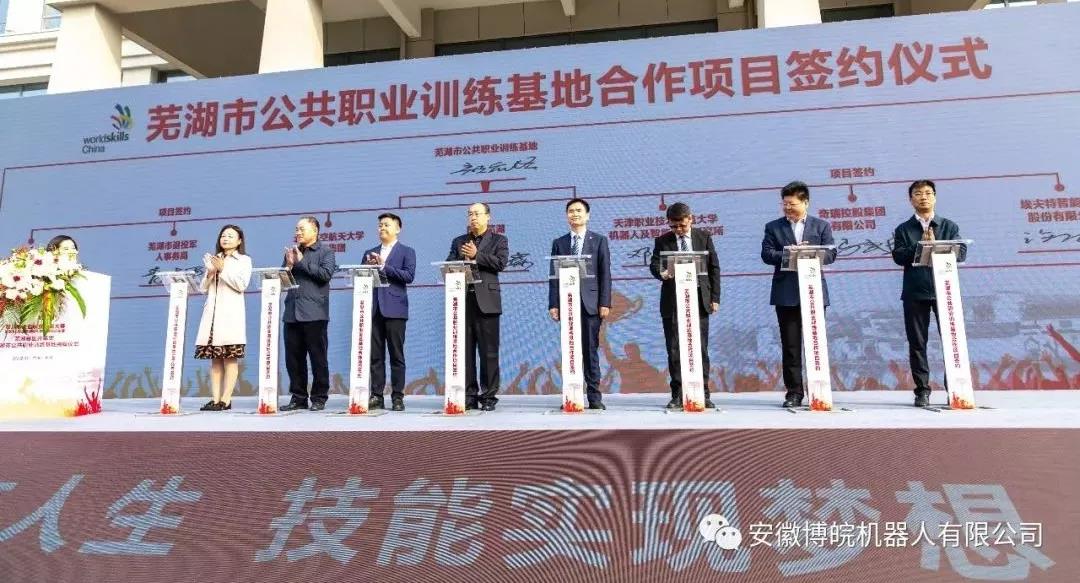 博诺2019年10月28日,芜湖市公共职业训练基地合作项目签约仪式、安徽省第46届世界技能大赛选拔赛开幕式在皖江人力资源公共职业训练基地隆重举行。安徽省人社厅党组成员、副厅长刘少华、芜湖市市委常委、秘书长张志宏、省职业技能鉴定中心主任王海、市委组织部副部长、市人社局局长高文、鸠江区区委书记袁发林、芜湖技师学院院长方院生等领导,以及参赛选手、12家签约单位等共计200余人参加了开幕式。