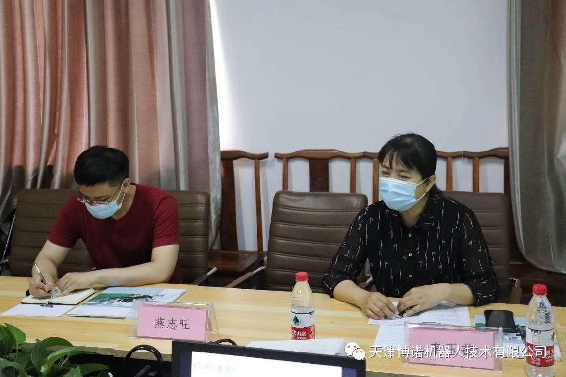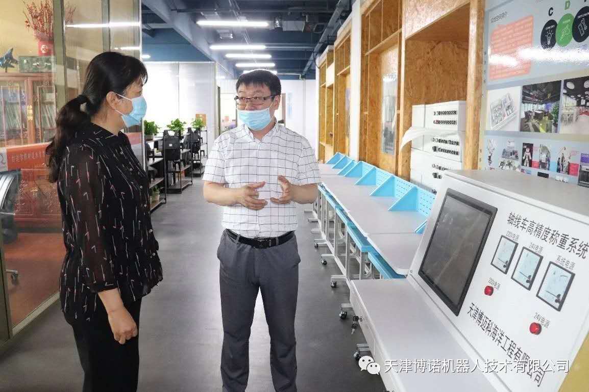 2020年6月17日下午,浓云初开,暖阳乍现,夏意融融。津南区委组织部李玉茹副部长一行莅临博诺机器人公司调研。公司首席技术专家邓三鹏教授对公司发展情况和研发产品进行了详细介绍。