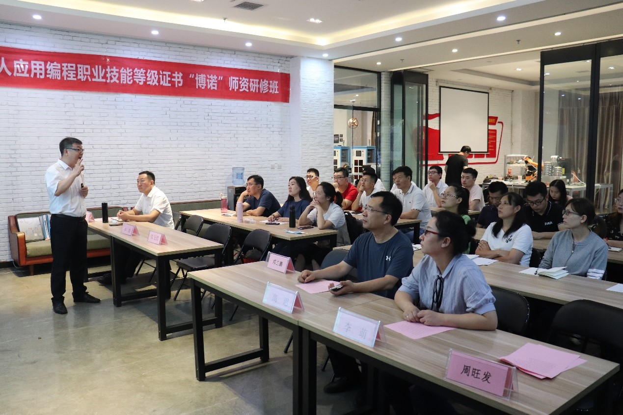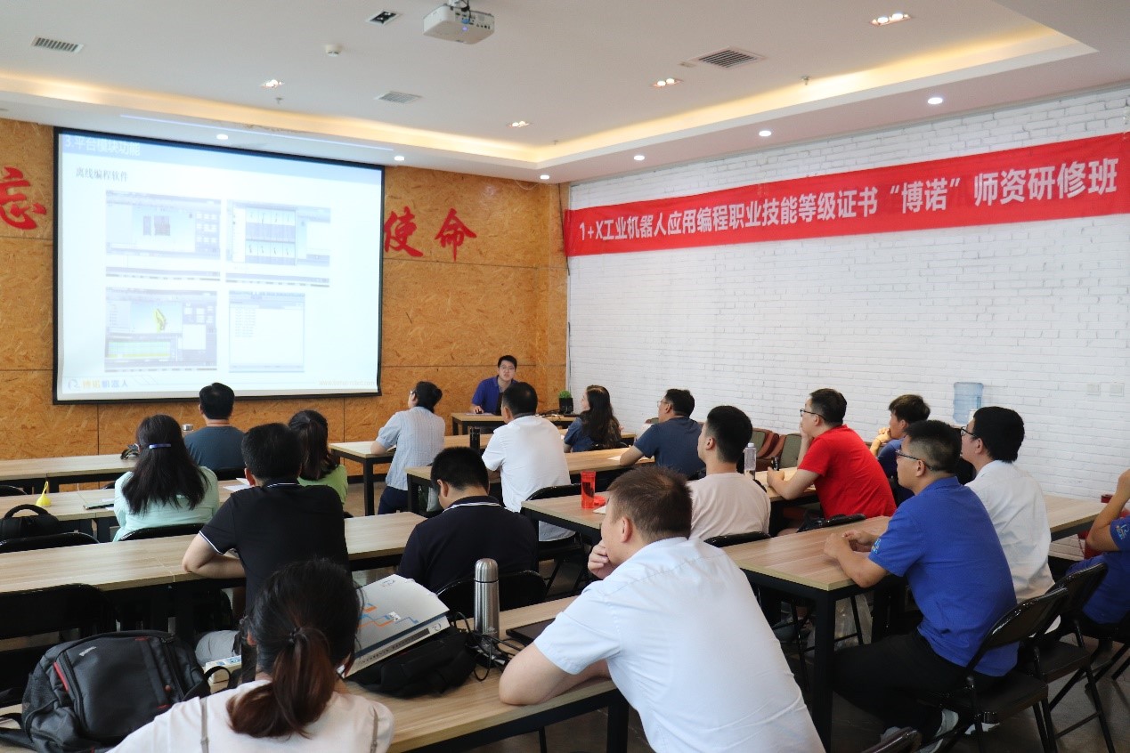 机器人相关职业技能等级证书与书证融通、工业机器人新职业标准剖析等方面作了讲解。随后,按照工业机器人应用编程中级的标准开展了技术培训。