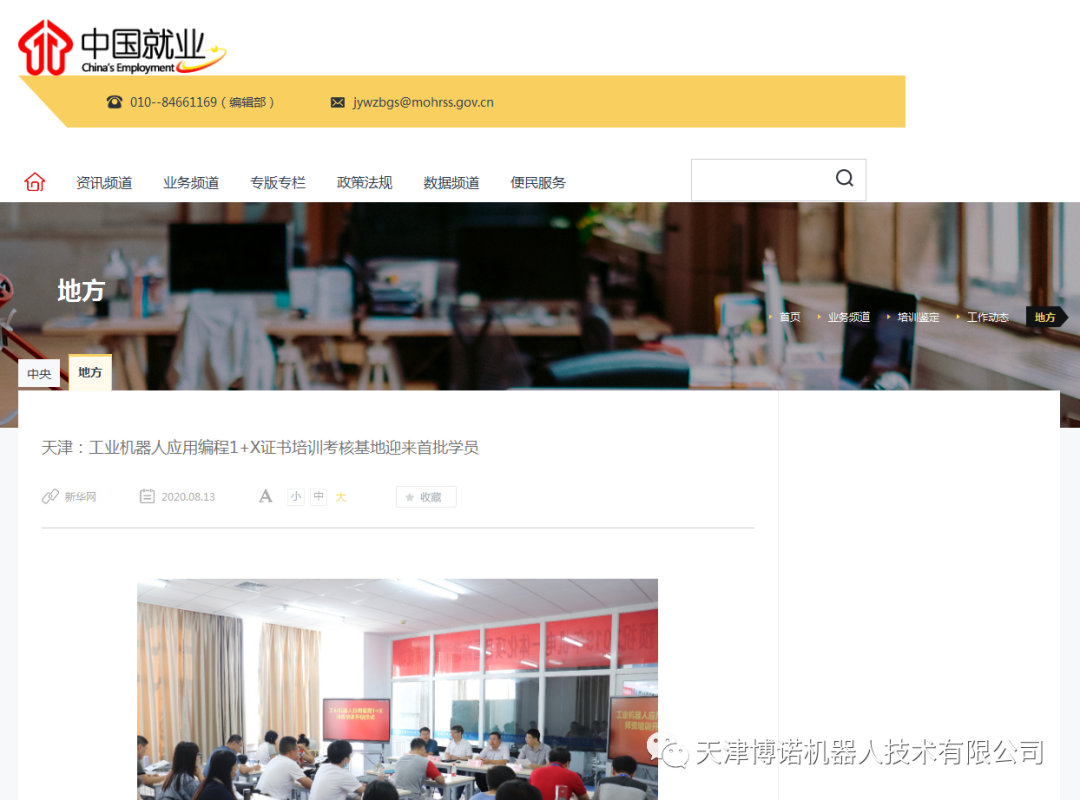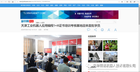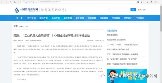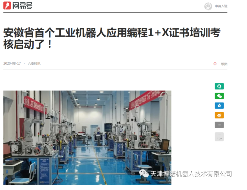 在北京赛育达科教有限责任公司专家组指导下,天津博诺机器人联合天津机电职业技术学院建设了天津市第一个教育部工业机器人应用编程1+X证书培训考核基地;天津博诺机器人联合皖江人力资源公共职业训练基地建设了安徽省第一个教育部工业机器人应用编程1+X证书培训考核基地,并同时在8月10日开展了培训考核工作,随着首期1+X证书培训考核的圆满完成,各大新闻媒体对培训持续进行了报道和转载。