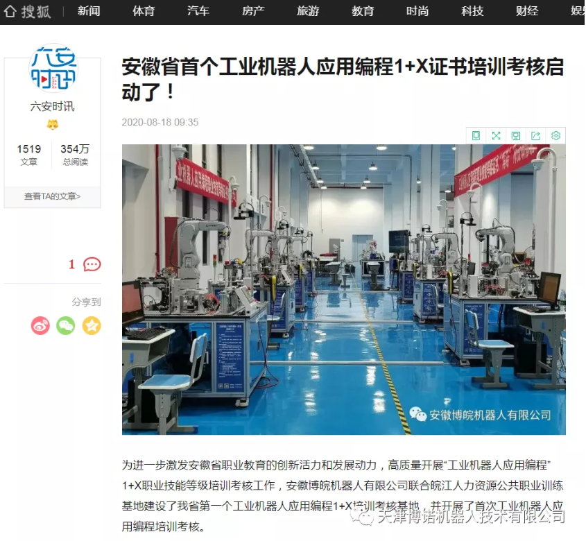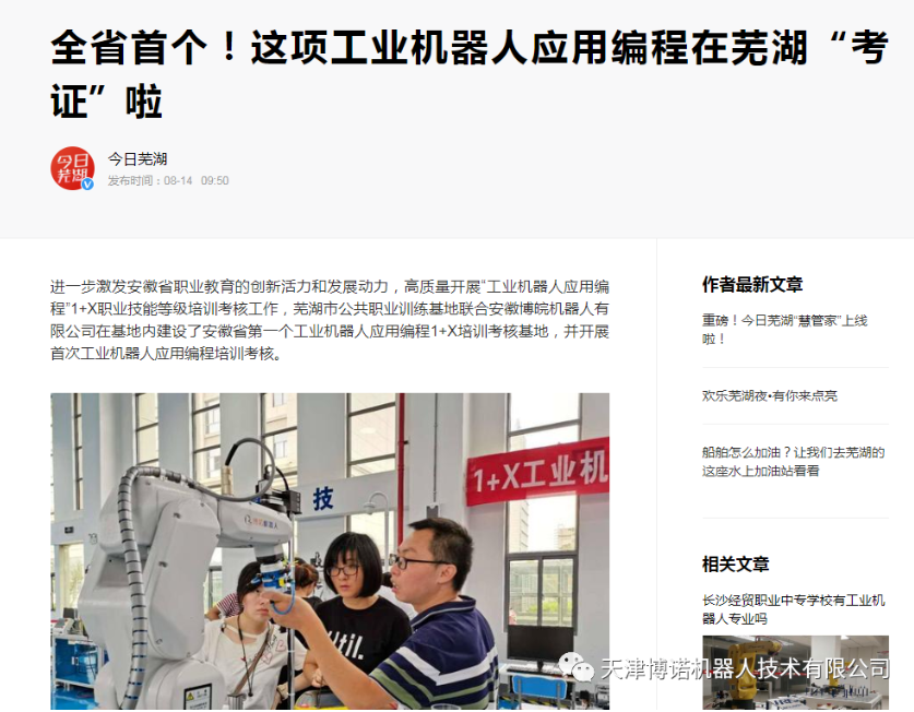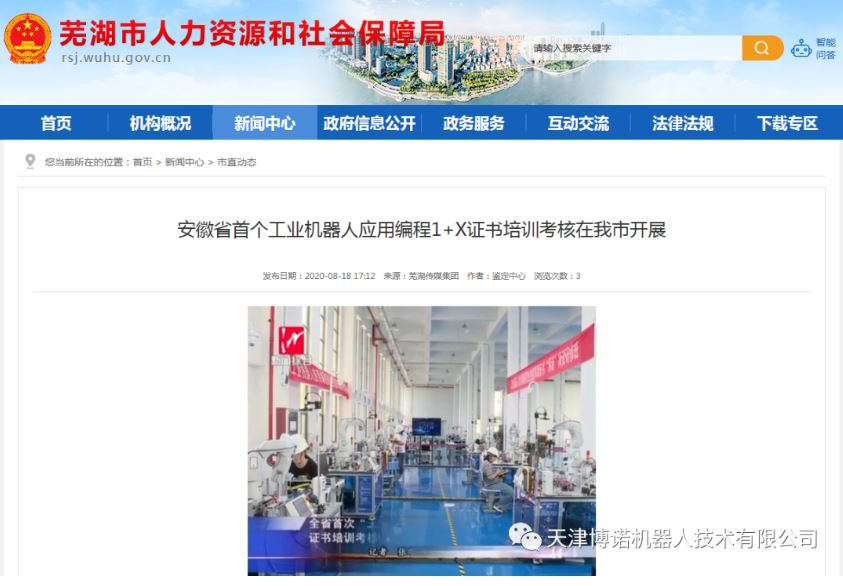 搜狐网、网易网、芜湖电视台、今日芜湖、芜湖市人社局、机器人库等媒体对安徽的培训考核进行了报道。“1+X”证书制度是职业教育改革的利器和手段,鼓励学生在获得学历证书的同时,积极取得多类职业技能等级证书,从而促进技术技能人才培养培训模式、评价模式改革,提高人才培养质量。我司提供技术支撑在天津、安徽所开展的培训考核是深化职业教育改革,畅通技术技能人才成长通道,提高人才培养质量,拓展就业创业本领的重要举措,将为复合型技术技能人才培养实现新的探索。