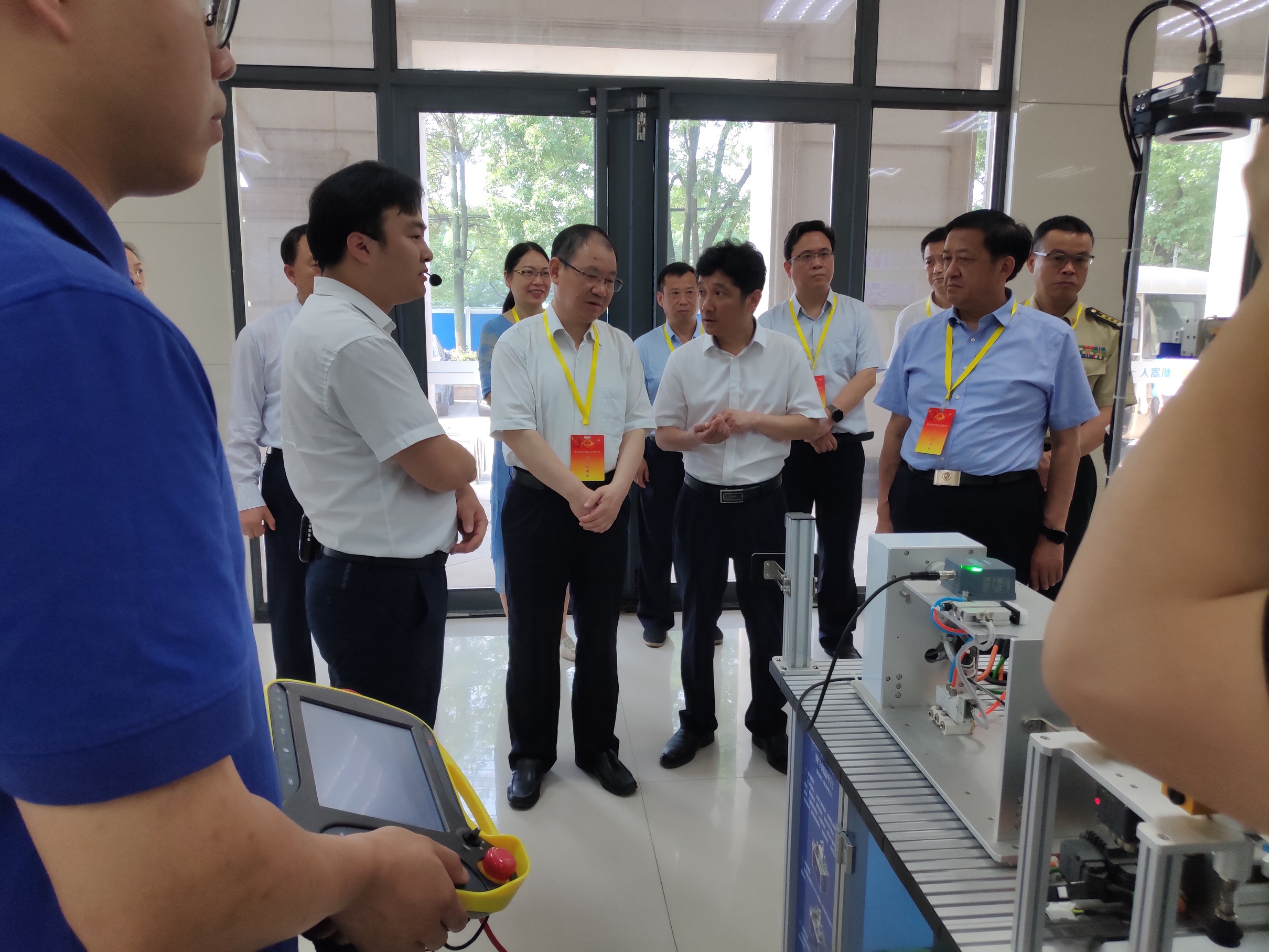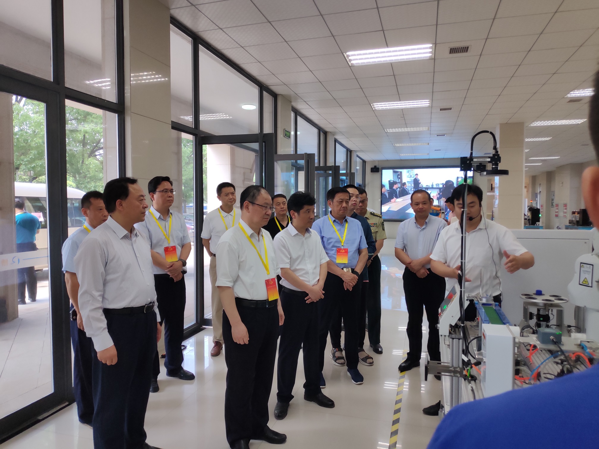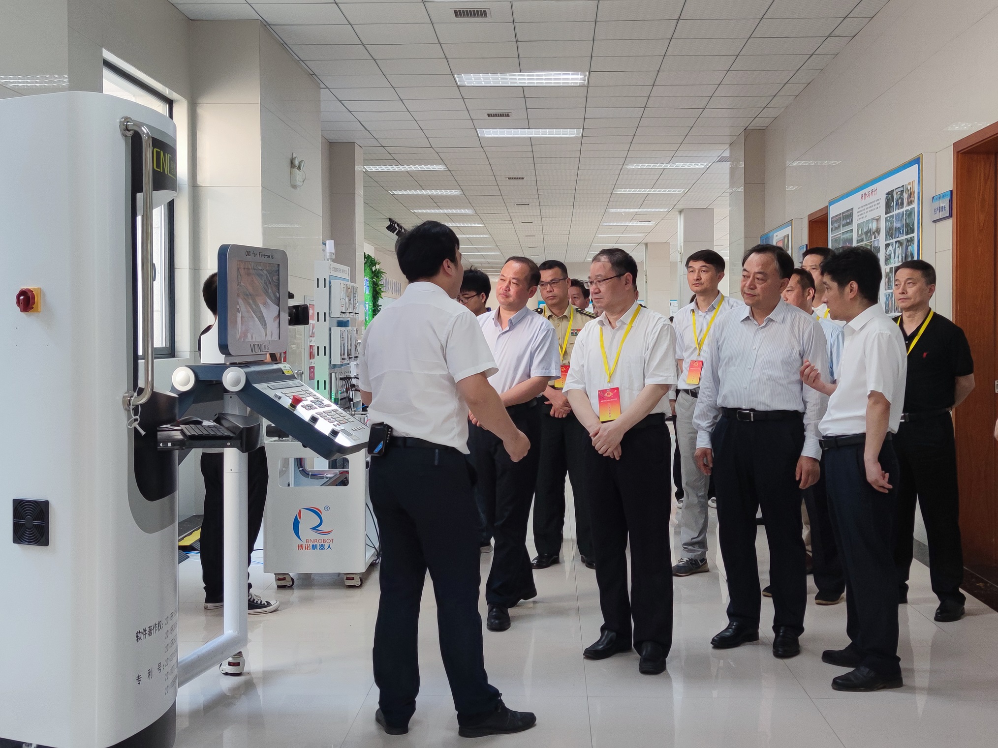 2021年6月2日上午,湖北省黄石市人大常委会党组书记、主任陈丰林、黄石市副市长何运平等领导一行莅临湖北博诺机器人考察指导。在韩浩副总经理的陪同下参观考察并指导了产业研究院的运行情况。