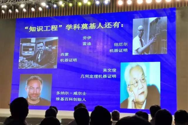 1999年,爱德华接受图灵奖时发表《How the What become the How》的主题演讲,说明了什么问题?什么叫知识?知识就是力量吗?劳伊雷迪跟他一起获得了图灵奖,还有西蒙也是来到中国很多次,不但拿到图灵奖,还拿到诺贝尔奖,还拿了美国心理学会的终生成就奖。我们的吴文俊做的几何机器的证明被全世界认知,还有维基百科的创始人多纳尔·威尔士把知识给了全社会。他们都是“知识工程”的学科奠基人。