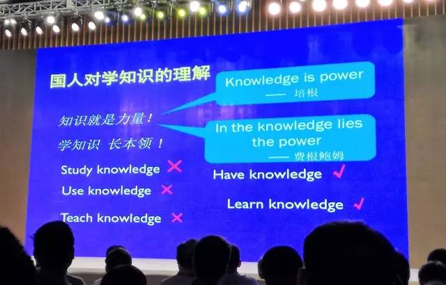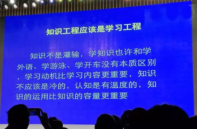 当智能走进学校的时候,当知识工程走进学校的时候,传统的教育就要结束了。知识不是灌输,学知识也许和学外文、开车、游泳没有本质的区别,学习动机比内容更重要,知识不应该是冷的,认知是有温度的,知识的运用比知识的容量更重要。