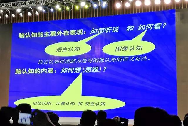 什么叫认知?我们看几个字——中国机器人峰会,看到这个字你头脑里面是那一块发出反映,你想起一个字,听起一个字,说起一个字都不一样。这样的认知我们不该研究吗?这就是脑认知给我们的启发。我们的计算机做什么?只能存储,不能记忆。这么多年来我们一味的追求计算,计算的智能超过了单个的人或者说一群人,但是我们忽略了记忆。
