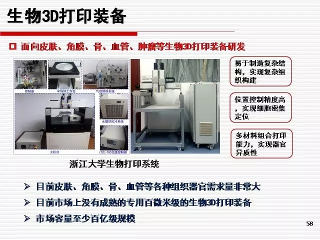 生物装备,把机器人技术作为智能装备的一部分来思考,这方面也有很大的可能。我们也做了这方面的探索,就在我们机械学院里。生物,现在需求很大。生物器官,也是国际研究热点,从皮肤到角膜,到血管,到肾、肝,然后肺、心脏等等。就研制样机而言都是精度的问题,还有如何研制多种装备。