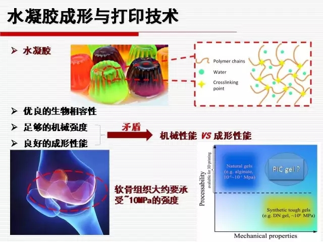 回过头,关节的问题,现在人工关节早就有,但是寿命不够长,这是时间问题,还有它的强度、机械性能刚度的问题。我们能不能用可降解生物性材料做人工关节?这个方面还有很多,比如用水凝胶、3D打印的方式来进行。