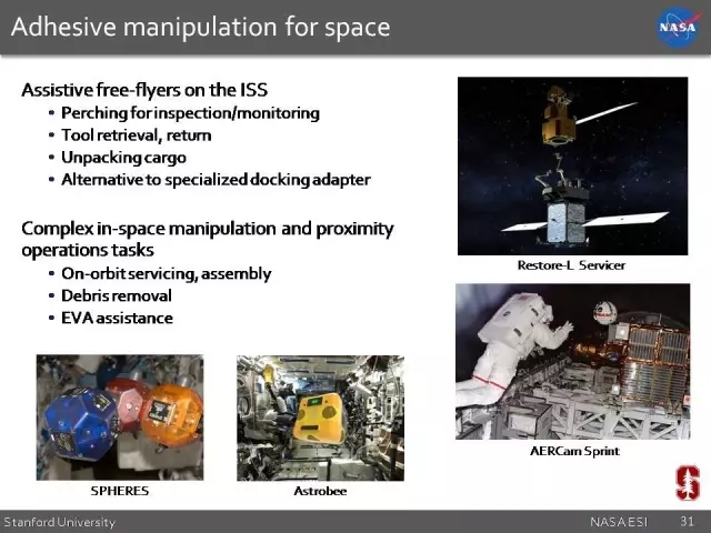 这跟传统的情况有点不同。然后它的偶联和解耦非常轻的,不需要有太大的外力,他们也进行了一些概念的验证。在这种情况下,对于物件的方向控制非常容易。在今年早期的时候,他们在国际空间站做了一些实验,有的物件原来在天空中飘来飘去。我们现在可以通过吸附装置粘在墙上。