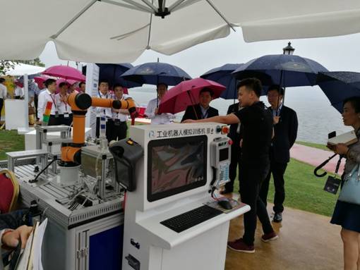 博诺博诺智创机器人携研发的最新产品——协作机器人多功能工作站,典型产品——工业机器人模拟训练机惊艳亮相,吸引了众多参会嘉宾的眼球,其中,浙江省委副书记、省委常委、代省长袁家军,浙江省委副书记、宁波市委书记唐一军,余姚市副市长毛丕显等领导冒雨前来参观。业内众多专家学者与媒体记者驻足博诺智创展位,倾听工程师的详细讲解,观看现场演示,给予高度评价。