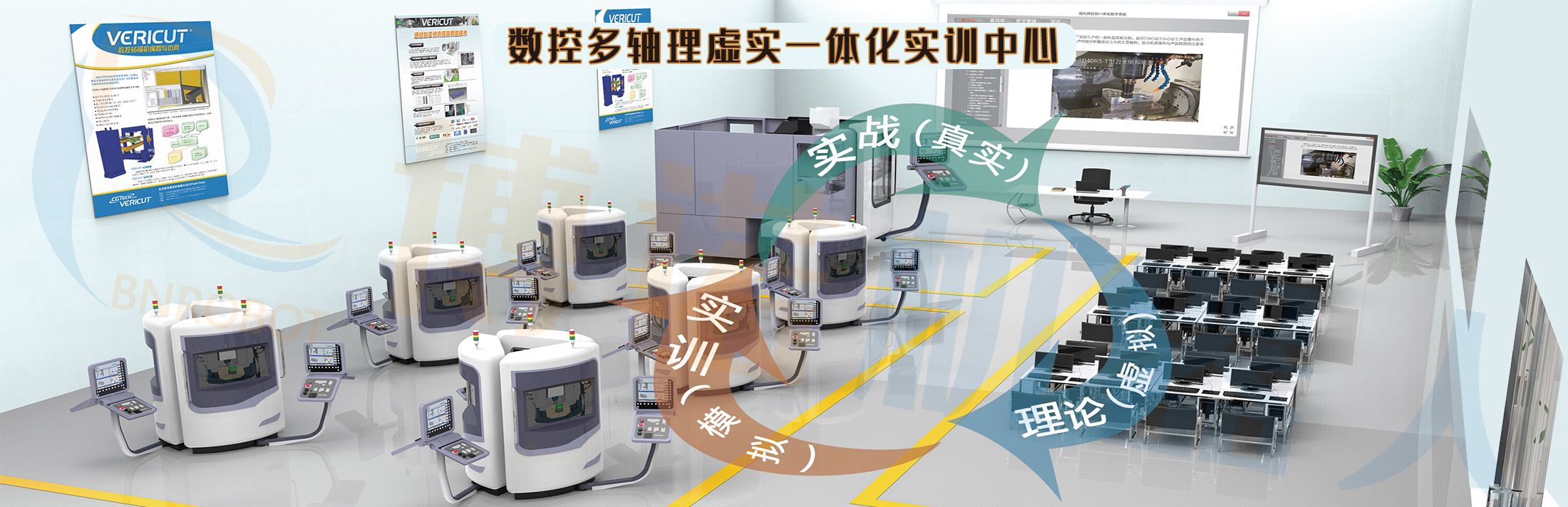 数控五轴模拟训练机包含模拟机主机、海德汉TNC640、iTNC530和西门子Sinumerik840D多数控系统、数字化虚拟机床、液晶显示面板、嵌入式控制系统和工业级Vericut数控多轴仿真软件等部分。可通过数控系统硬件操作面板进行真实编程、操作和驱动数字化虚拟机床,模拟真实机床进行虚拟切削,完全真实模拟数控五轴机床的安全仿真、操作与实际加工过程。