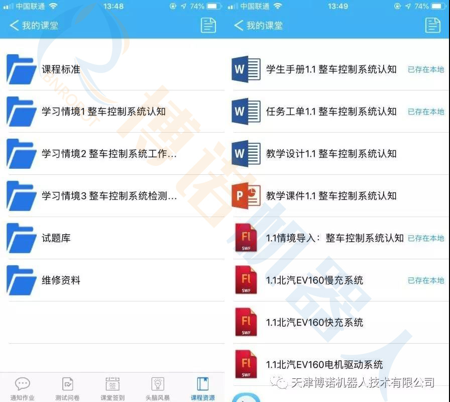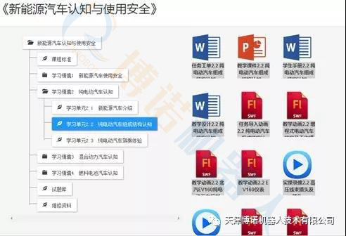 博诺2.教学资源是为一体化教学服务的软件资源总合。为每个学习单元开发的教学资源有:教学设计、学生手册、教学课件、任务工单、教学录像、教学动画、试题库、维修资料等。