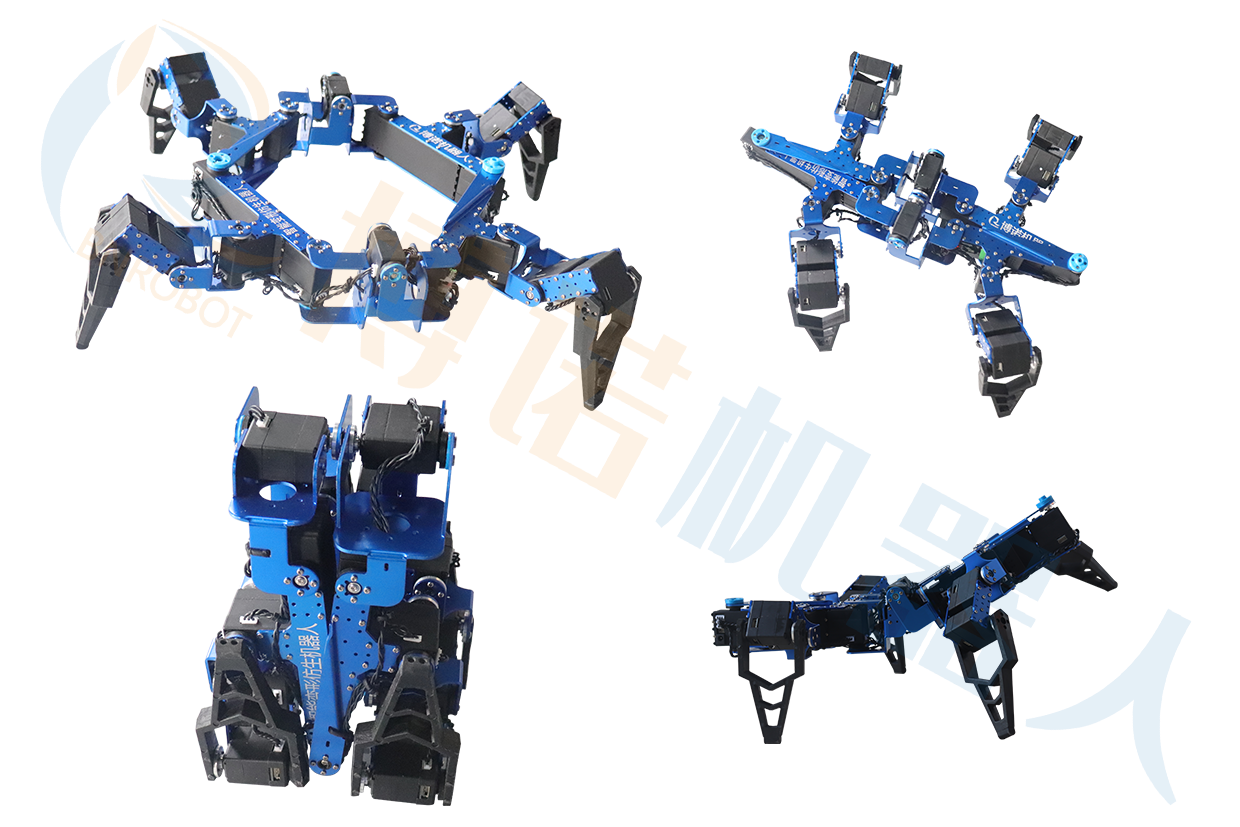智能变形仿生机器人由17个自由度组成,可以实现蜘蛛、小狗、竹节虫、壁虎等多种仿生动物之间的互相转换,集趣味性、实用性于一体;实现了“一机多能”。控制核心采用世界上最小台式机的卡片式电脑-树莓派(Raspberry Pi),包含了图形化编程学习、Python语言学习、机械设计、机器人机构学、仿生机器人学、语音、视觉识别、物联网工程、自动化、语音、视觉识别、机器人动力学、数据采集、数据整理等技术。