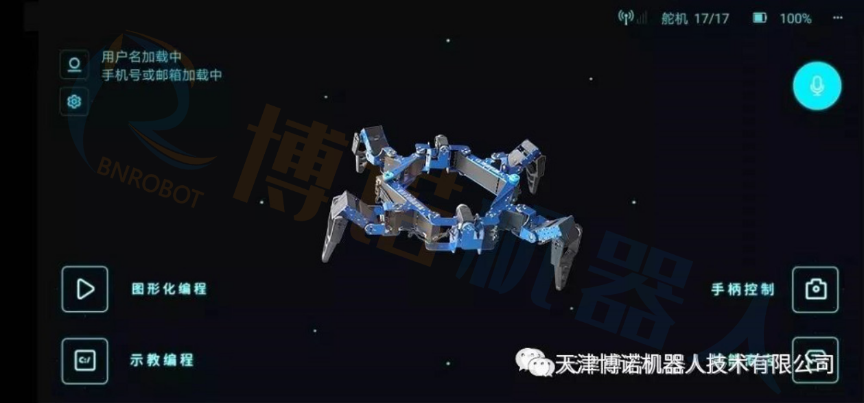实现对智能变形仿生机器人的基本控制、展示表演、手柄控制、语音控制、图形化编程、示教编程、技能云端等功能。