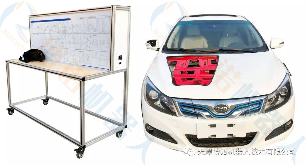 博诺1.整车车身(局部解剖),低压系统部件齐全,真实地呈现了纯电动汽车车身低压控制系统的连接控制关系、安装位置和运行参数,车身低压系统各部件保留,电气连接方式不变,可以进行插拔拆卸练习。