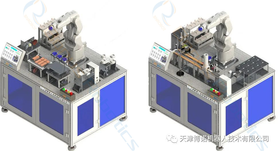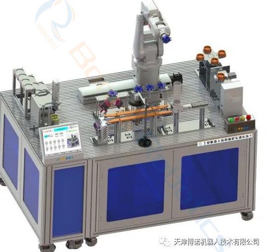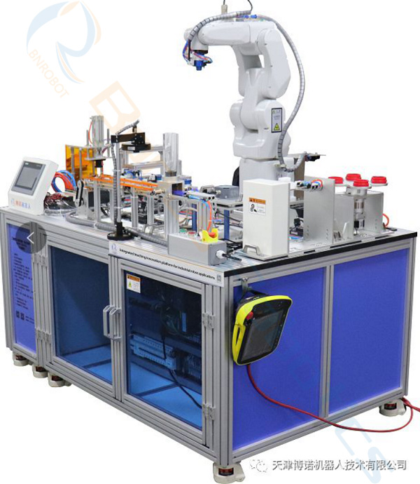 The integrated teaching innovation platform in the field of industrial robot application is an integrated teaching platform that integrates training, training, and assessment, and is developed in strict accordance with the requirements of Industrial Robot Application Programming and "1 + X" vocational skill level standards. This device is suitable for industrial robot application programming beginner, intermediate, advanced training and competition. The platform is based on the typical application of industrial robots and is equipped with a variety of functional modules, which can meet the teaching and offline programming of industrial robots in typical application scenarios such as trajectory, handling, palletizing, sorting, gluing, welding, grinding, assembling, and stamping. It also includes the teaching of industrial robot system technology such as RFID, smart camera, walking axis, positioner, teaching industrial robot system technology such as virtual debugging and secondary development. It adopts modular design and can be flexibly configured according to training and assessment requirements. It integrates industrial robot teaching programming, offline programming, virtual debugging, servo drive, PLC control, variable frequency control, HMI, machine vision, sensor application, hydraulic and pneumatic, bus Application of communication, digital twin and secondary development technologies.