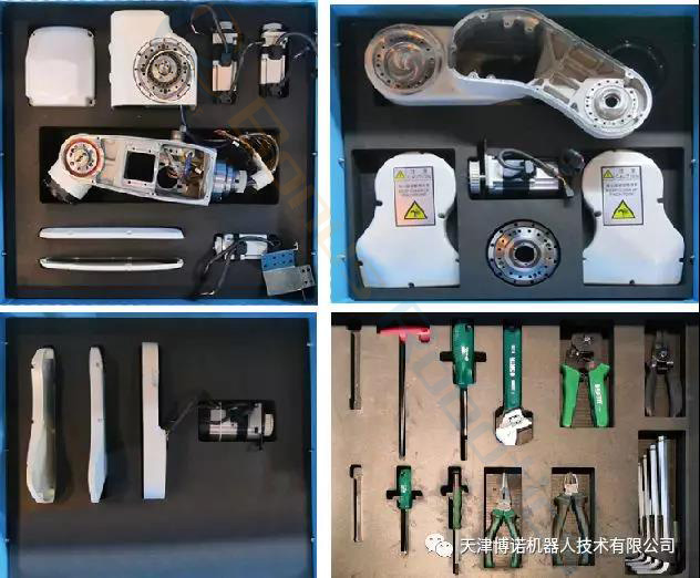 Industrial robot installation and maintenance training system consists of industrial robot fault setting and diagnosis intelligent training system, industrial robot installation and adjustment platform (industrial robot module, console, base, teaching unit, control system installation platform), industrial robot motion controller, Servo driver, programmable controller, human-computer interaction system, online monitoring system, programming workstation, industrial Ethernet switch, gas supply system, smart camera, supporting tools, etc. Integrating application technologies such as mechanical installation and adjustment, electrical wiring, servo, frequency conversion, pneumatic drive, robot control, PLC control, and human-computer interaction, it can complete the disassembly and assembly of industrial robot bodies, industrial robot control system installation and adjustment, industrial robot zero calibration, Programming and operation of industrial robot fault diagnosis and maintenance, industrial robot handling, drawing, assembly ,and other applications; the robot body is suitable for repeated disassembly, can be disassembled to the screw level, and the locking torque and tension force can be accurately measured during disassembly And control; The control system installation platform has an open design, which is suitable for electrical wiring, debugging, and maintenance; equipped with an intelligent training system for fault setting and diagnosis, which can set faults and intelligent scores online. It can complete the installation and maintenance of industrial robots and the application of programming operations. It is equipped with rich teaching resources and can meet the experimental training teaching, skill evaluation,and competition training.