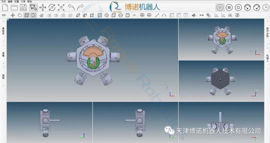 It makes fulluse of IRobotSIM to import physical model, update sensor, run history, andother data, integrates multi-disciplinary, a multi physical quantity,multi-scale and multi probability simulation process, completes mapping invirtual space, to reflect the whole life cycle process of corresponding physical equipment. The virtual model of a physical entity is created digitally,and the behavior of a physical entity in the real environment is simulated bydata.