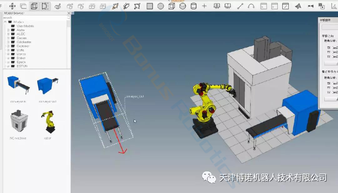 projects, simulate the workflow and layout of industrial robots, conveying