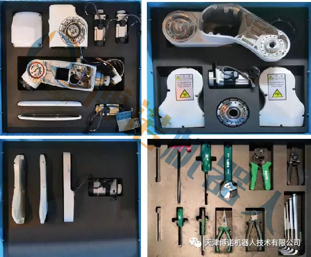 1.工业机器人本体采用工业级关节式6轴串联机器人,紧固连接部分采用特殊技术设计,适合多次重复拆装,各单元模块可以拆装到螺钉级,拆装过程锁紧力矩和张紧力能够精确测量和控制。便于深入了解工业机器人本体内部机械结构与原理,锻炼精密装配能力。
