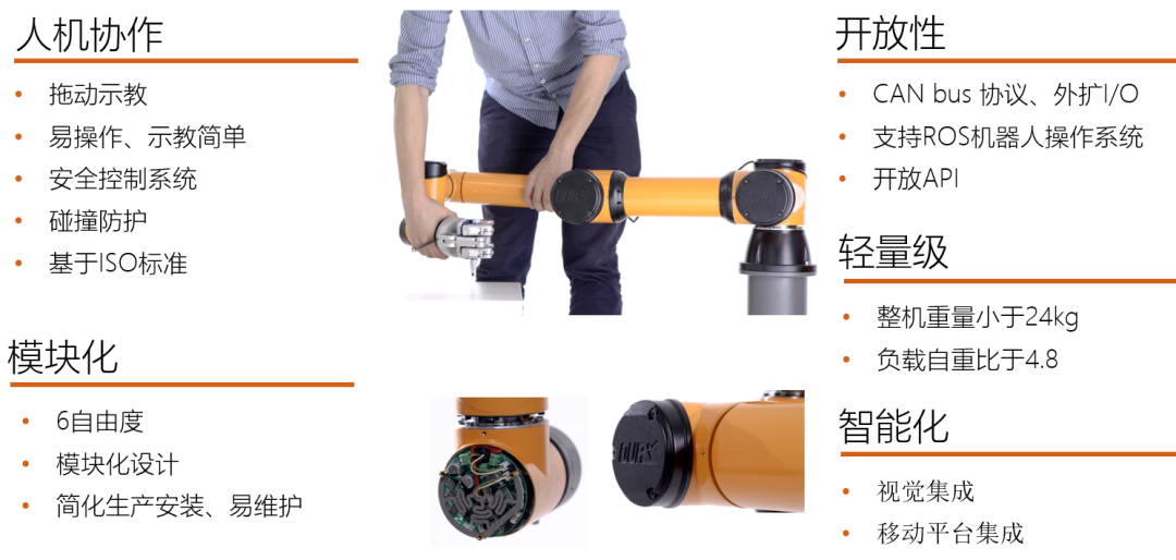 协作机器人(Collaborative Robot)是一种被设计成可以安全的与人类进行直接交互/接触的机器人。与传统工业机器人不同,协作机器人拓展了机器人功能内涵中“人”的属性,使机器人具备一定的自主行为和协作能力,可在非结构的环境下与人配合完成复杂的动作和任务,使机器人真正成为人的合作伙伴,结合人的智力、灵巧性和机器的体力、力量和准确性,人机协作完成诸如精密装配、检测等工作,解决传统工业机器人应用的局限性。
